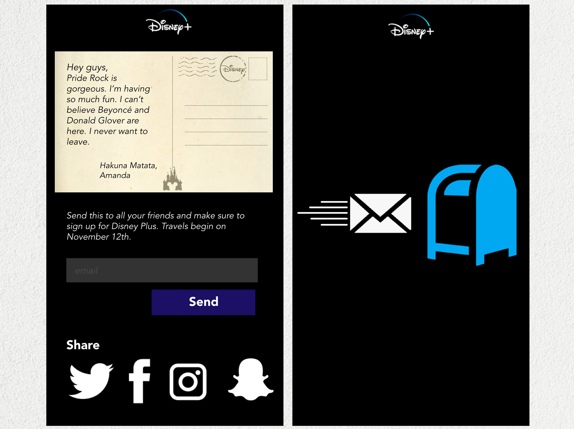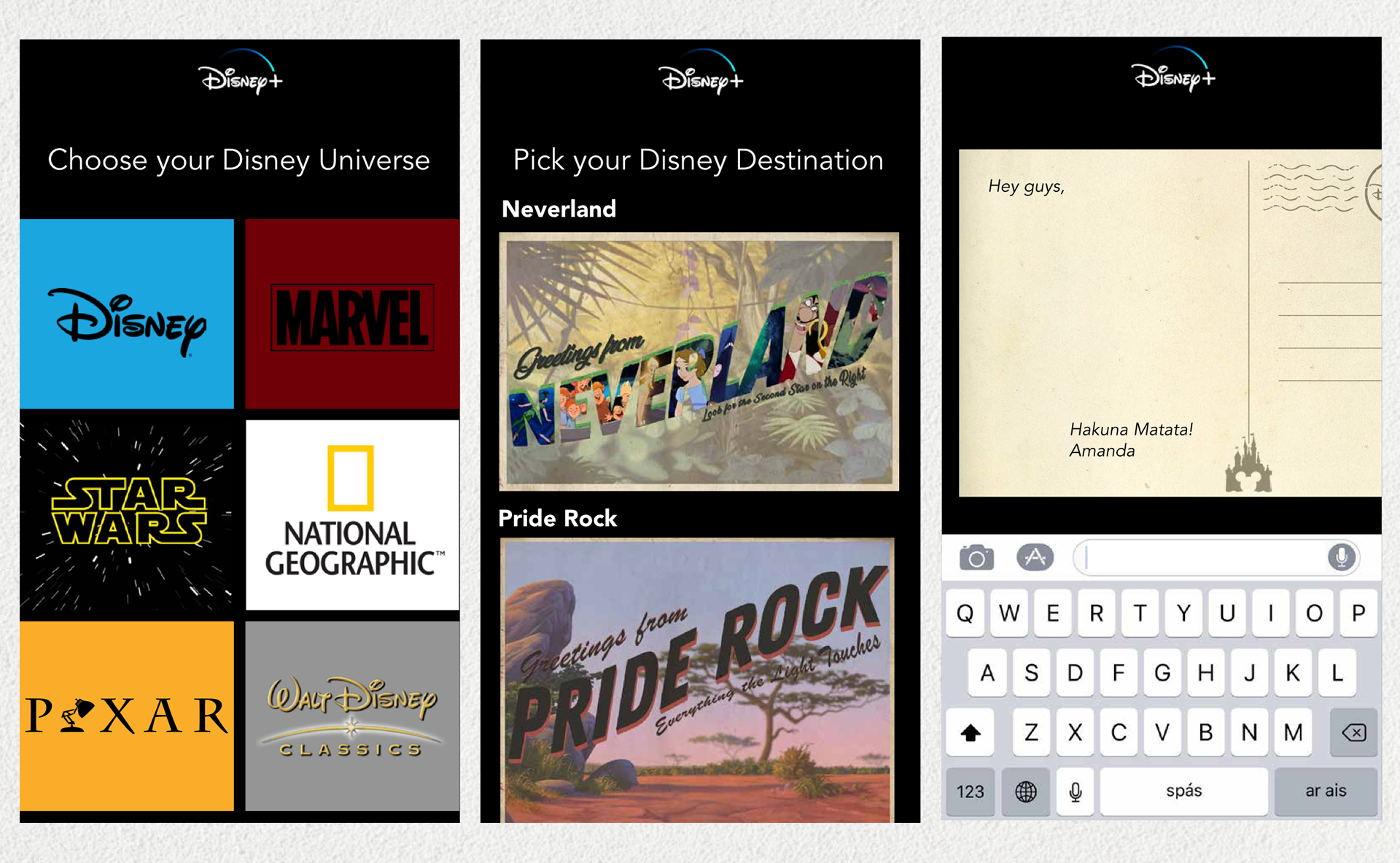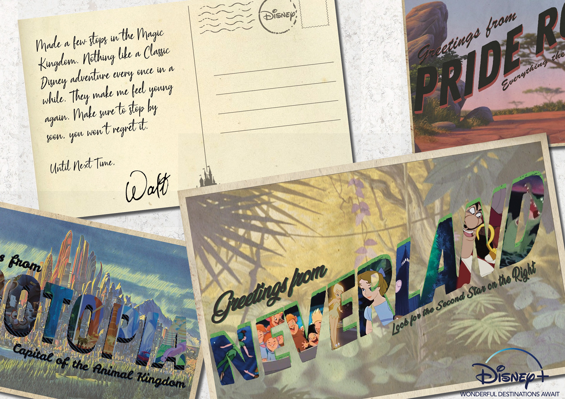How do you increase the appeal of subscribing to another streaming service? Nostalgia! I've designed these postcards to invoke nostalgia for Disney lovers.