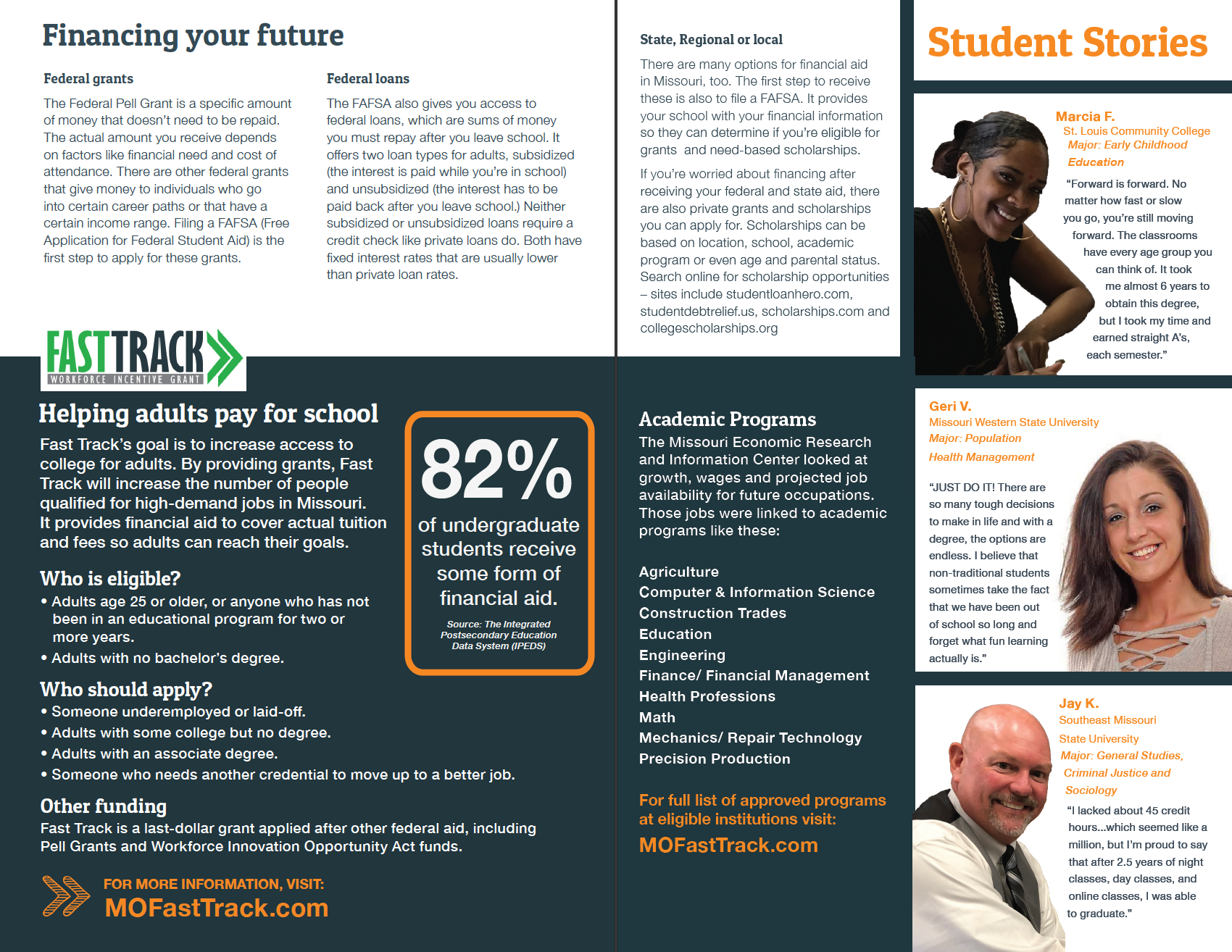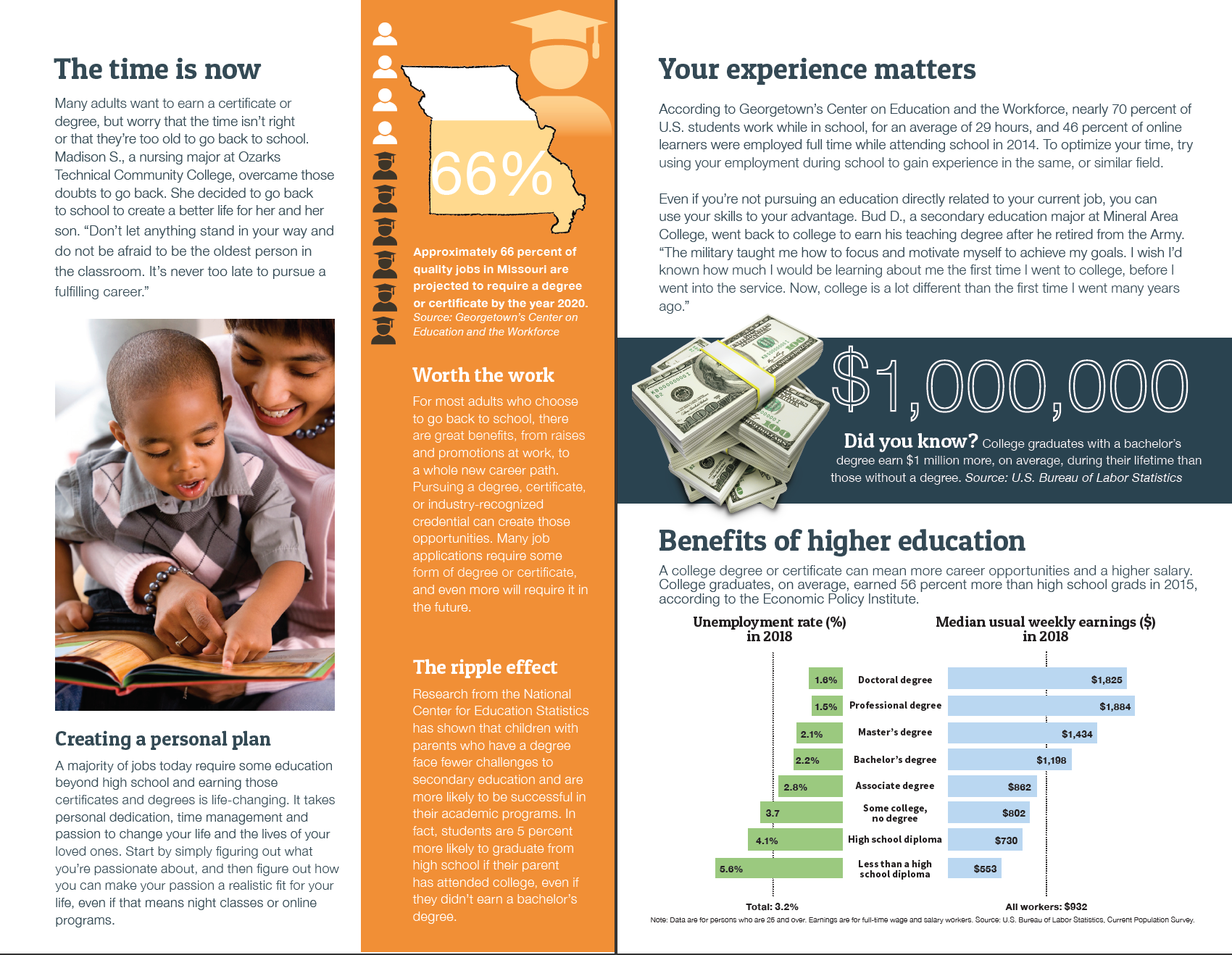 For the project, I researched the information and wrote the content. Then, I designed this pamphlet for the Missouri Department of Higher Education.